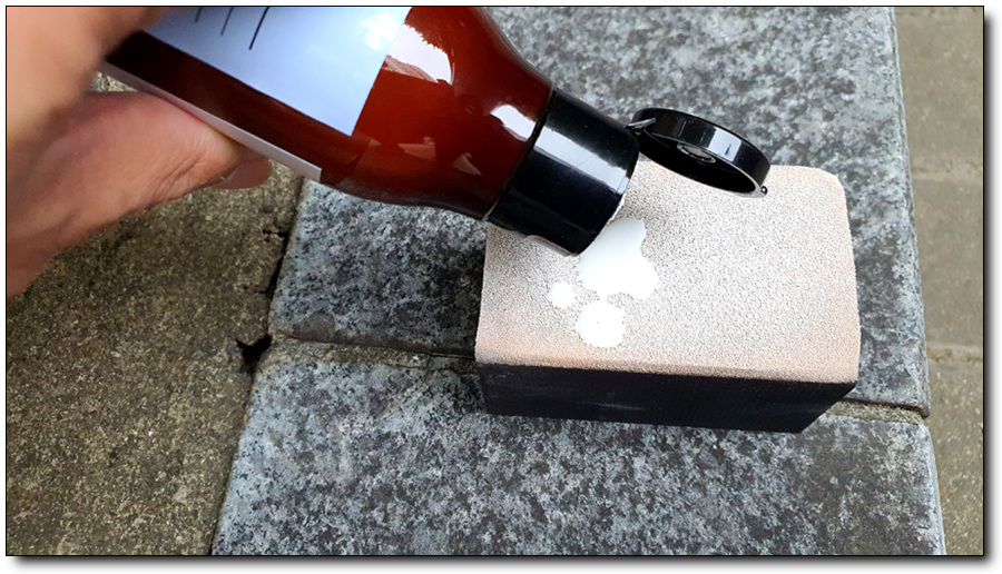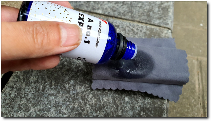 발수코팅제는 단순히 바르고 닦으면 되는 간편한 시공으로도 발수 효과를 누릴 수 있습니다. 코팅블럭 틈 사이에 코팅천을 끼우고, 코팅천이 젖을 만큼 발수코팅제를 묻혀주면 됩니다.