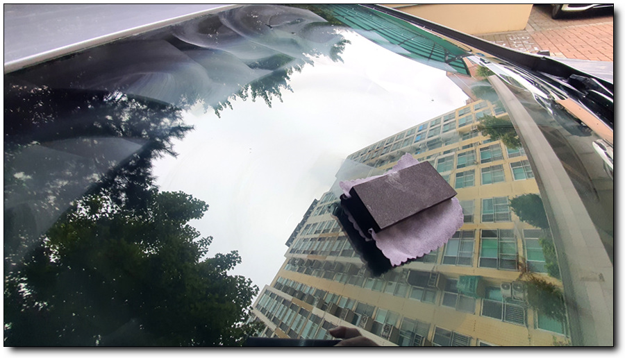 차량 앞유리를 나눠서 도포하고, 코팅제가 남은 경우 여러 번 반복해서 보강 도포 작업을 해줘도 됩니다. 그리고 15분 가량 코팅제를 건조시킨 후 타월로 닦아 주기만 하면 최소 6개월 이상 코팅이 유지됩니다.