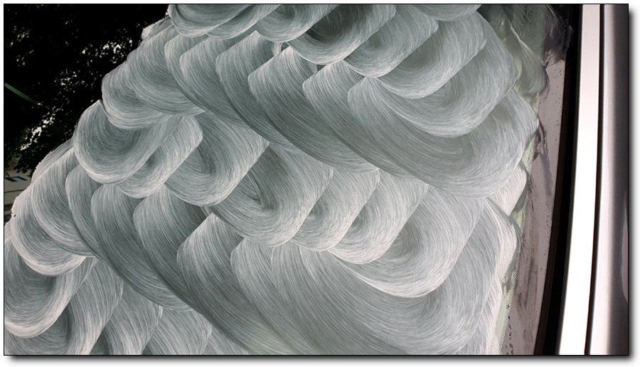 차량 유리 면에 상하 방식으로 강하게 누르면서 발수코팅제를 바르면, 육안으로도 도포면이 확인되어 빈틈없이 코팅액을 묻혀 셀프 시공할 수 있습니다.