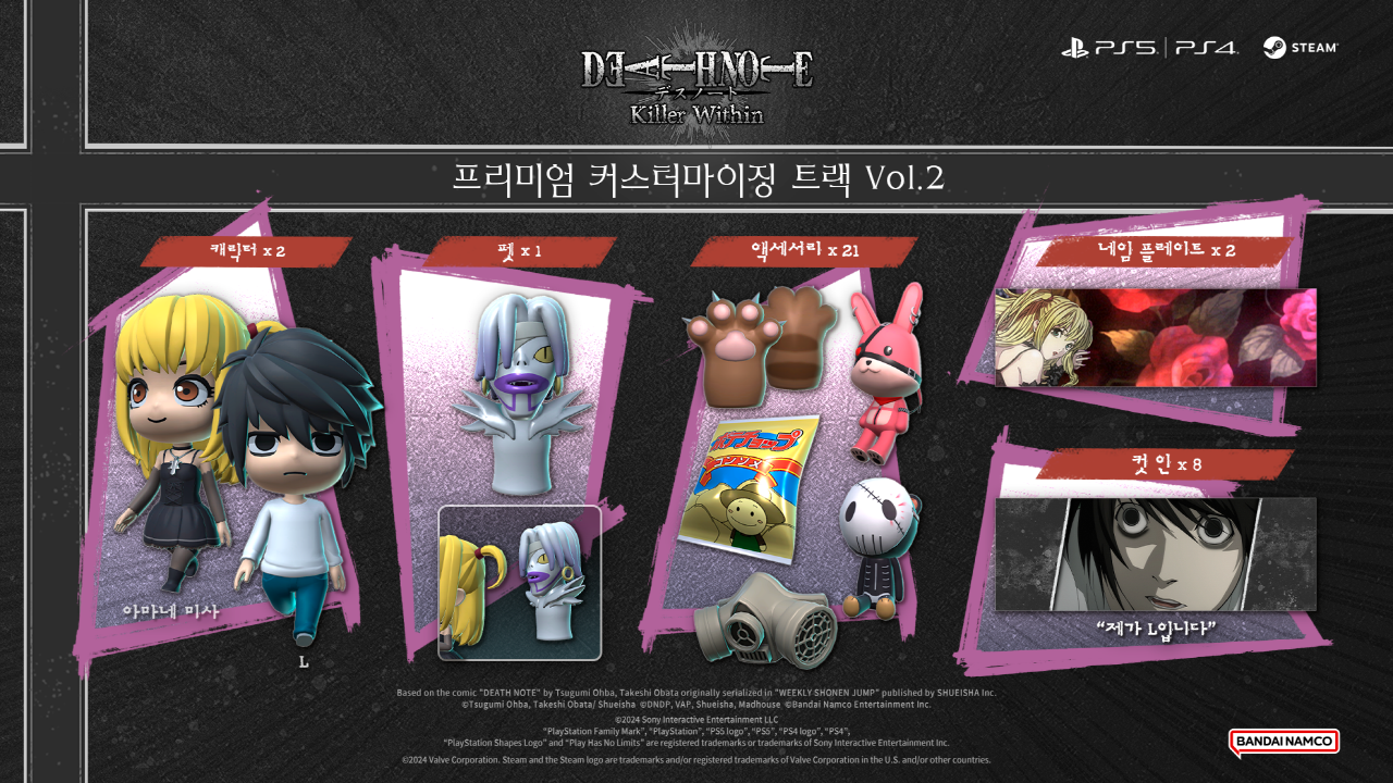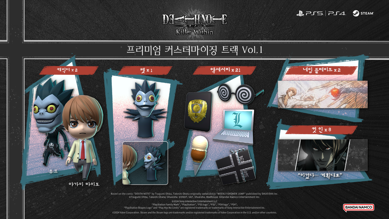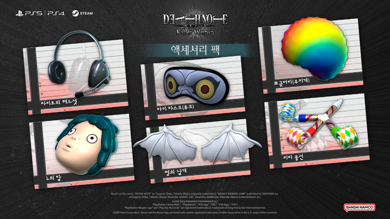반다이남코 엔터테인먼트 코리아(지사장 장태근)는 PlayStation®5, PlayStation®4용 온라인 소셜 추리 게임 ‘DEATH NOTE 킬러 위딘’(한국어판)을 2024년 11월 5일(화), STEAM®용을 오늘(2024년 11월 6일) 발매했다고 발표했다.