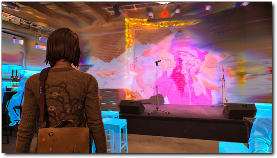 [라이프 이즈 스트레인지: 더블 익스포저]에서 히로인 ‘맥스’는 초자연적인 감각을 확장한 파동을 방출하여 현재 타임라인에 머물면서 다른 타임라인에 있는 사람과 사물을 엿볼 수 있습니다. 이를 통해 그녀는 다른 사람들의 대화를 엿듣고, 용의자를 추적하는 등의 조사를 그들이 모르게 평행 타임라인에서 수행할 수 있습니다.