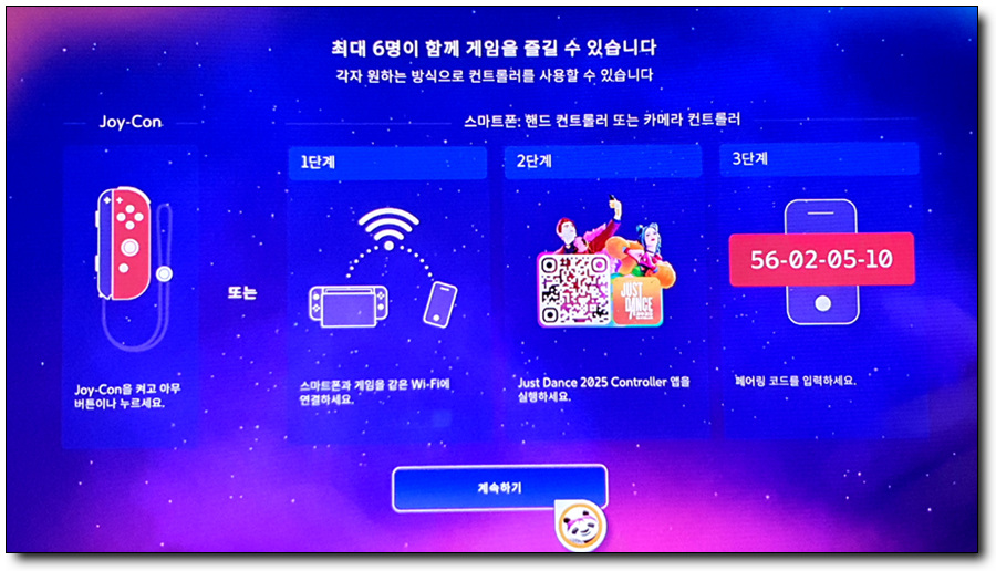 [저스트 댄스 2025 에디션]은 최대 6명의 플레이어가 동시에 게임을 즐길 수 있습니다. 닌텐도 스위치 전용 컨트롤러인 조이콘이 부족해도 스마트폰을 컨트롤러로 연결해 활용할 수 있습니다. 스마트폰 전용 앱인 ‘저스트 댄스 2025 컨트롤러(Just Dance 2025 Controller)’ 앱은 유저가 보유한 스마트폰의 앱스토어에서 무료로 다운로드 받을 수 있습니다.
