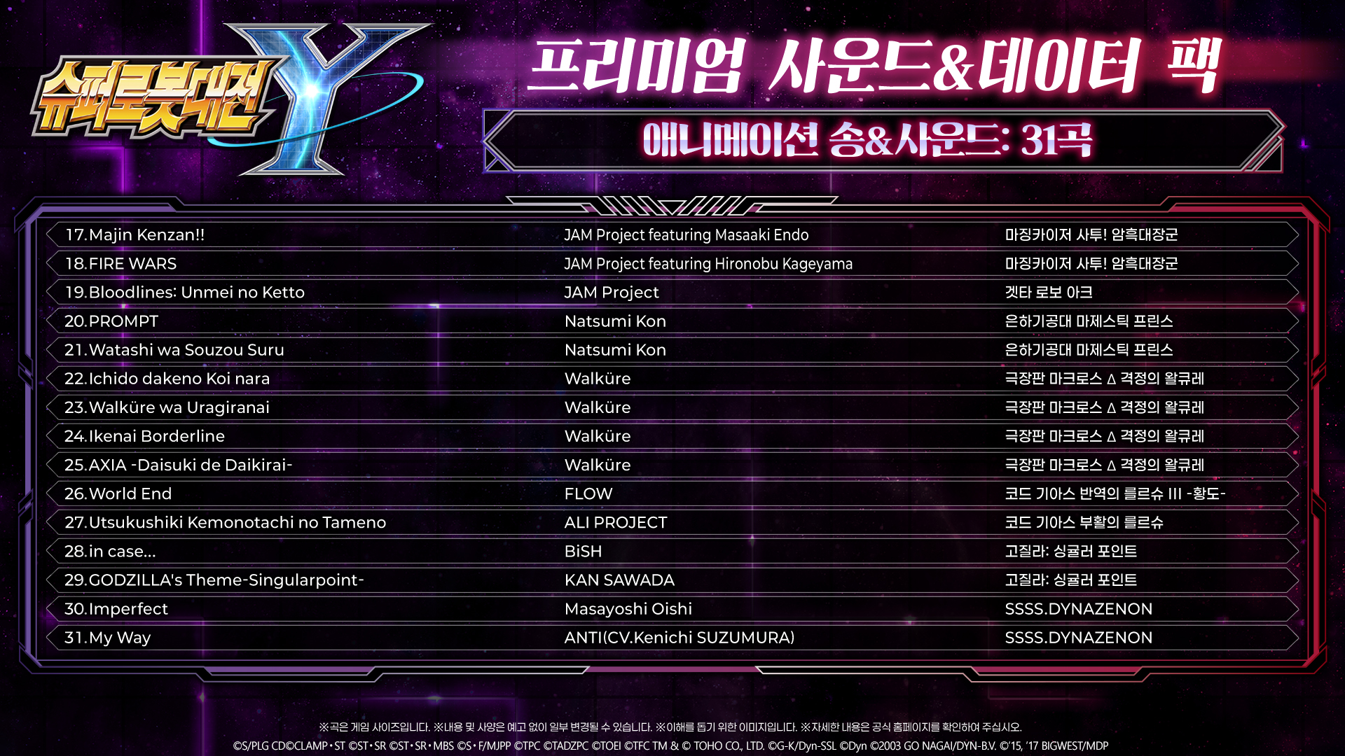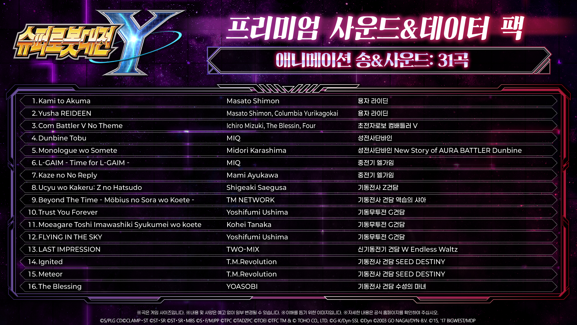※슈퍼로봇대전 시리즈의 곡 일부 포함
