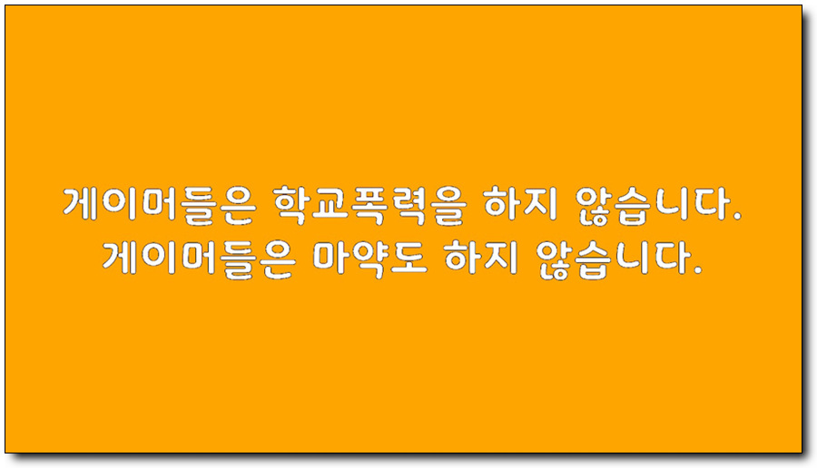 개발자분은 게임 개발에 있어 정치적인 메시지를 담지 않는다는 신념을 가지고 게임을 만들어 왔는데, 작년 계엄 선포 이후 내란의 기간 동안 힘든 시간을 보내셨다고 합니다. 그래서 게이머라면 지켜줬으면 하는 메시지로 게이머들은 학교폭력을 하지 않고, 마약도 하지 않는다는 문구를 담았다고 합니다.