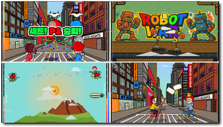스틱으로 과녁을 움직여 맞추는 드론 슈터, 로봇의 파츠들을 조립한 후 무기로 상대를 공격하는 로봇워, 버튼을 누르며 전진하다 베개를 휘둘러 상대방의 머리를 가격하는 마상창시합, 버블건을 쏘면 반동으로 움직여 조준과 회피를 동시에 해야 하는 버블 크라이시스 등 다양한 장르의 게임을 즐길 수 있습니다.