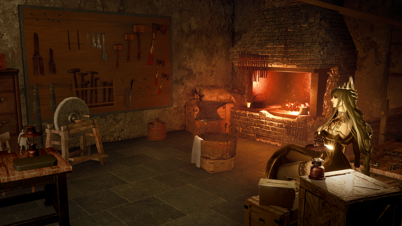 공방에서는 무기, 제일, 전승 술식을 강화할 수 있다. 또 무기나 방어 술식에 속성을 부여하는 ‘성질 변경’을 할 수 있으며, 적이 떨어뜨린 소재로 스테이터스를 강화하는 장비도 제작할 수 있다.