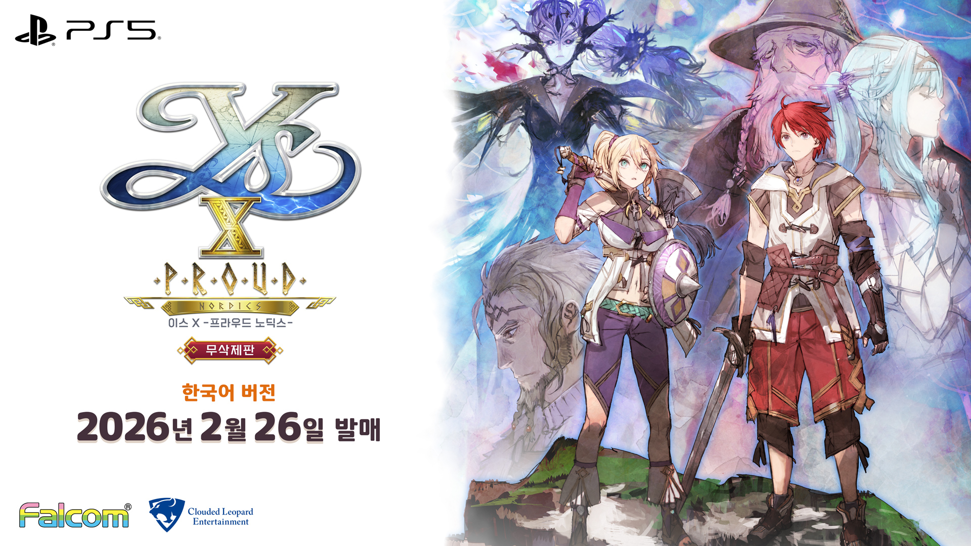게임피아㈜(대표 정종헌, www.egamepia.com)는 Clouded Leopard Entertainment(대표 첸 웬웬)와 협력하여, 니혼 팔콤 주식회사(대표: 콘도 토시히로)가 개발하는 액션 RPG PlayStation®5 『이스 X -프라우드 노딕스- 무삭제판』 패키지 제품의 예약판매를 2026년 2월 11일부터 시작한다고 밝혔다. 본 제품은 한국어 자막을 공식 지원한다.