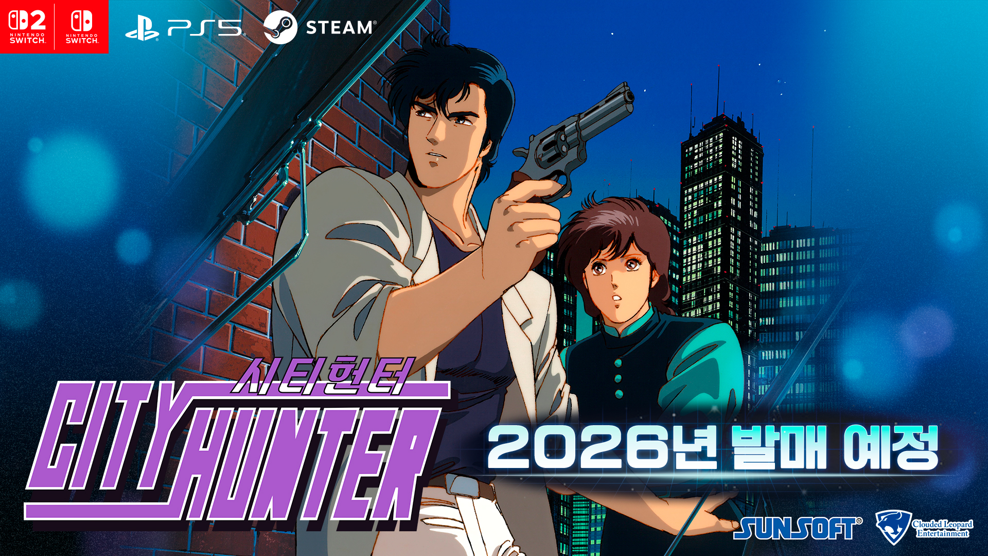 게임피아㈜(대표 정종헌, www.egamepia.com)는 Clouded Leopard Entertainment(대표 첸 웬웬)와 협력하여, SUNSOFT(SUNCORPORATION 대표: Ryusuke Utsumi)가 개발한 PC 엔진용 소프트웨어를 복각한 『시티헌터』 PlayStation®5, Nintendo Switch™ 패키지 제품 일반판 및 컬렉터즈 에디션의 예약판매를 2026년 2월 13일부터 시작한다고 밝혔다. 본 제품은 한국어 자막을 공식 지원한다.
