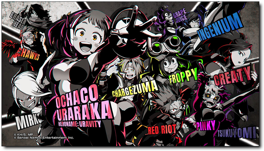 원 포 올의 계승자로 최고의 히어로가 되고자 노력하는 ‘미도리야 이즈쿠’, 폭발적인 성격과 강력한 폭발을 만들어 내는 개성을 지닌 ‘바쿠고 카츠키’, 중력을 제어할 수 있는 능력을 지닌 ‘우라라카 오챠코’, 프로 히어로의 아들이자 불과 얼음을 제어할 수 있는 능력을 지닌 ‘쇼토 토도로키’ 등 1-A 학생 전원이 플레이어블 캐릭터도 등장합니다.