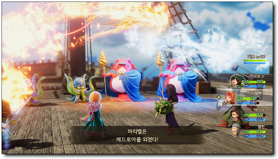 [드래곤 퀘스트 VII Reimagined]는 직업에 따른 고유한 특성이 배틀의 핵심이 됩니다. 직업에 따라 주문 및 특기가 달라지고, 버스트 차지 상태가 되면 직업에 따른 특성 효과를 발동할 수 있어 개성적인 효과를 배틀에 활용하는 RPG 게임입니다.
