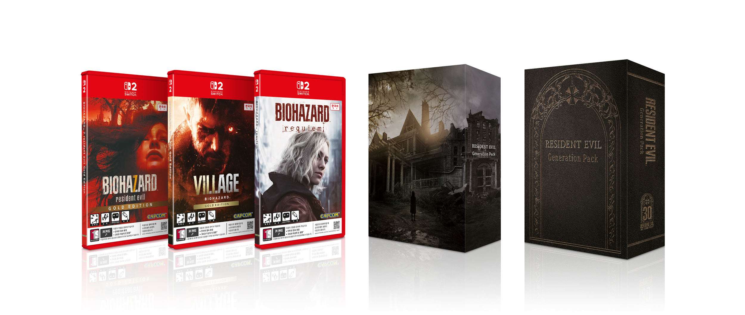 또한 CAPCOM의 대표 서바이벌 호러 시리즈를 Nintendo Switch™ 2 플랫폼에서 만나볼 수 있는 특별 세트 상품인 Nintendo Switch™ 2 『BIOHAZARD Generation Pack』(바이오하자드 제너레이션 팩)도 함께 출시된다. 본 팩에는 시리즈 최신작인 『BIOHAZARD requiem』 본편과 함께, 서바이벌 호러의 새로운 기원을 연 『BIOHAZARD 7 resident evil Gold Edition』, 그리고 불길한 마을에서의 참극을 그린 『BIOHAZARD Village Gold Edition』이 모두 포함된다. 특히 『BIOHAZARD 7 resident evil Gold Edition』, 『BIOHAZARD Village Gold Edition』에는 각각 금지된 영상, End of Zoe, 윈터즈 익스팬션 등 모든 추가 콘텐츠 및 특전이 수록되어 있어 풍성한 구성을 자랑한다.