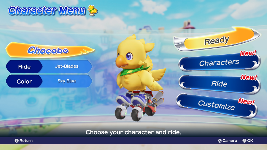 '초코보' 시리즈의 최신작은 레이스 게임! 초코보나 동료들이 개성적인 머신으로 레이스에 참전한다.