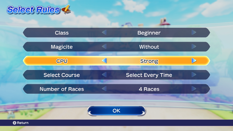 클래스나 마석의 종류, CPU의 강도 등, 레이스의 다양한 규칙을 커스터마이즈해서 즐길 수 있는 모드다. 나눔 플레이 기능을 사용하여, 2명이 동시에 즐길 수 있다.