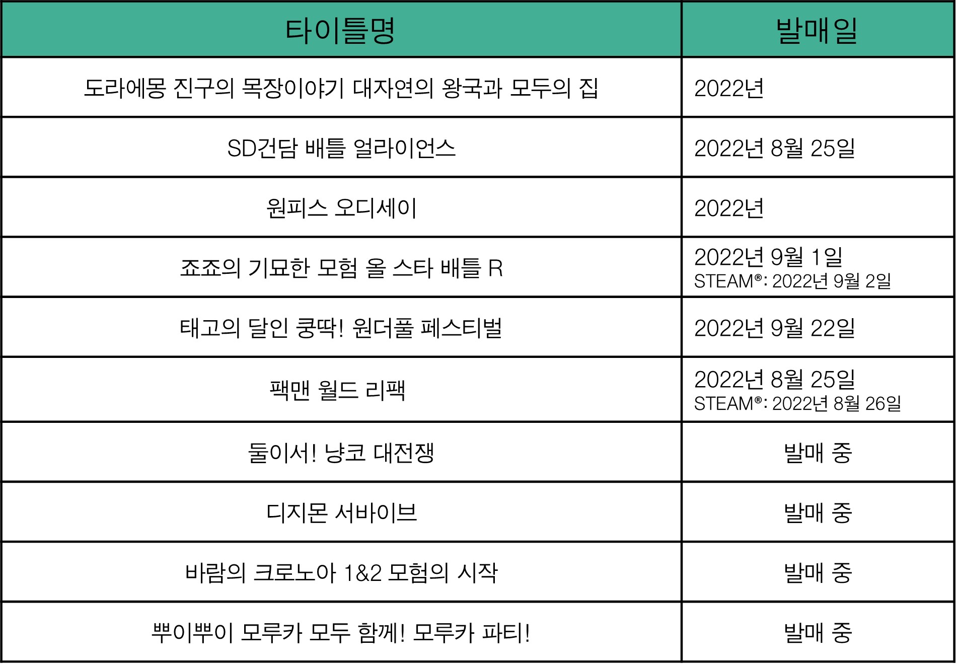 발매일: Nintendo Switch™, PlayStation®5, PlayStation®4, Xbox Series X|S, Xbox One 2022년 8월 25일 (STEAM® 2022년 8월 26일)