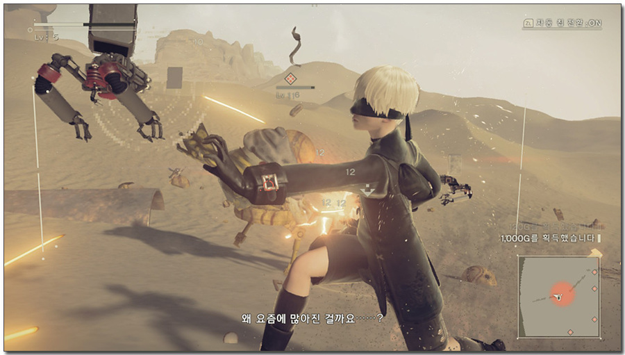 플레이어는 요르하 부대의 일원으로서 파견된 무뚝뚝한 성격의 범용 전투 모델 안드로이드 ‘2B’가 되어 검술과 격투술로 기계생명체에 대항하며, 지구탈환을 위한 전투를 펼쳐나가게 됩니다.