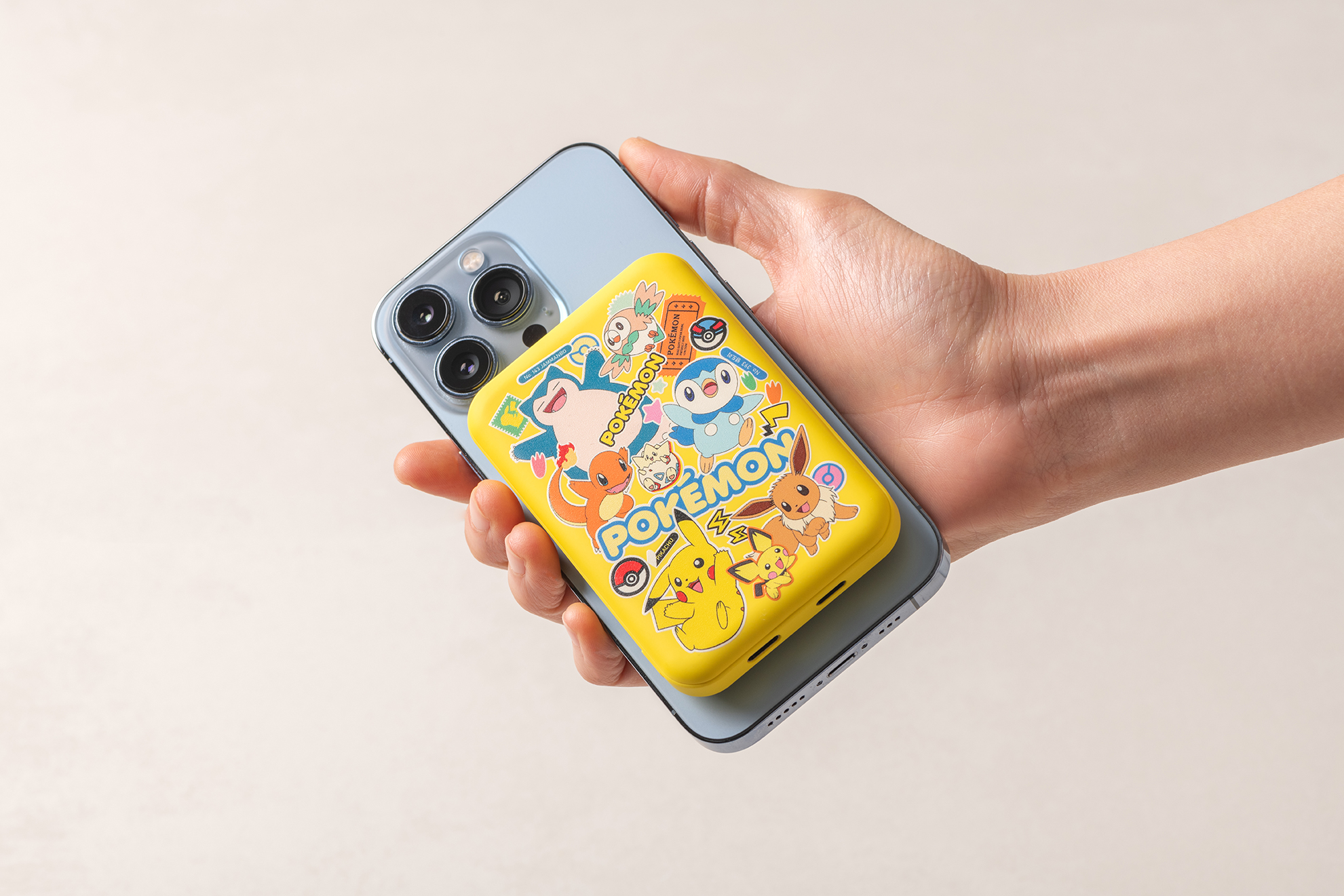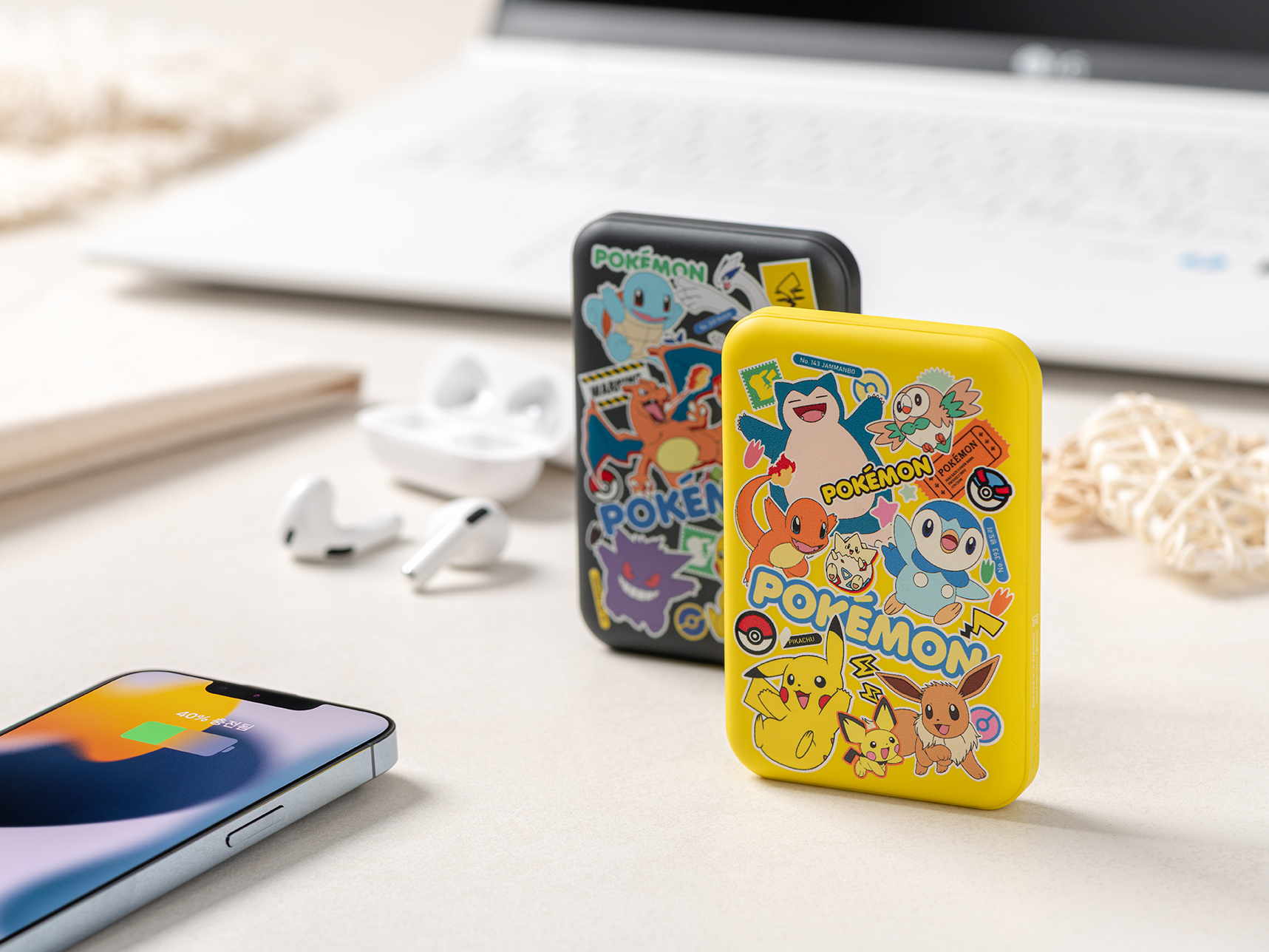 이번에 새롭게 출시된 ‘포켓몬 맥세이프 보조배터리’는 스티커를 모티브로 한 귀여운 디자인과 강력한 맥세이프 탈부착 편의성을 갖고 있는 제품이다. 15W 고속 무선 충전(C-TYPE 및 Lightning 유선 충전 시 최대 20W)을 지원하며 컴팩트한 사이즈(95x62x10mm)와 116g의 가벼운 무게로 스마트폰에 부착한 상태에서도 휴대에 유용하다. 또한 과전압/과전류/과열 보호 방지 등 소비자 안전 및 배터리 보호 기능을 탑재하고 있으며 C-TYPE 케이블이 기본 제공된다.