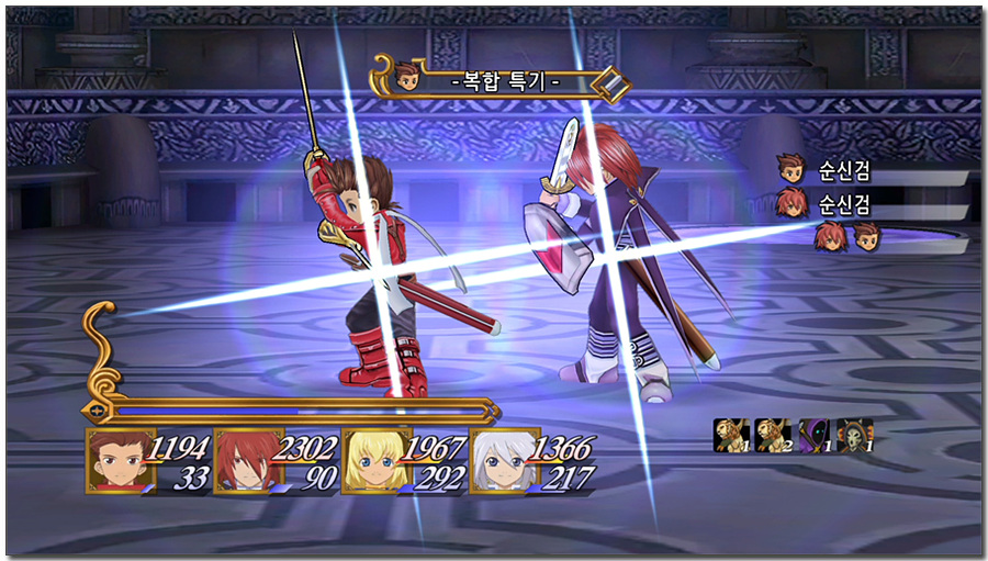 [테일즈 오브 심포니아 리마스터]는 게임 진행을 통해 캐릭터마다 특기와 술법으로 구분되는 술, 기를 습득하게 됩니다. 술, 기는 레벨 상승에 따라 습득할 수 있는 것과 특정 술, 기를 어느 정도 사용해야만 습득할 수 있는 특기나 술법으로 나뉘어지는데, 캐릭터의 테크니컬 타입과 스트라이크 타입에 대응하는 특정 계통의 술, 기만을 습득할 수 있게 됩니다.
