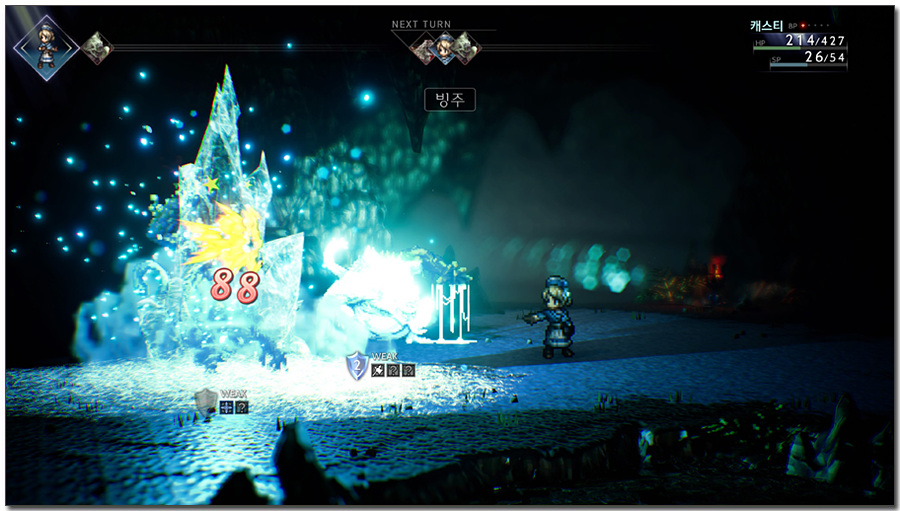 [옥토패스 트래블러 2]에서는 캐릭터가 지닌 무기나 기술을 적절히 사용하여 적의 약점을 찾아낼 수 있습니다. 적의 약점을 간파하여, 속성 공격을 펼치면 적의 실드 포인트를 깎을 수 있게 됩니다. 그리고 적은 실드 포인트가 소진되면 브레이크 상태에 빠지게 됩니다.