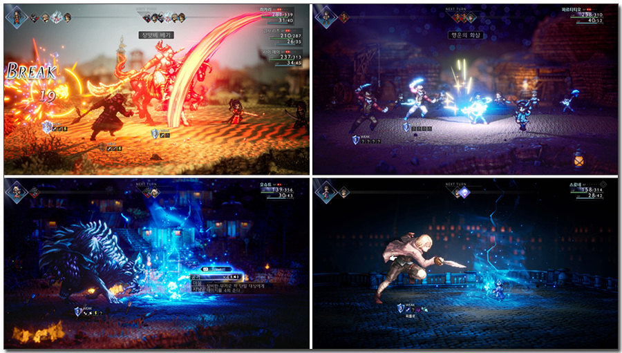이 외에도 황야 지방에서 개척민으로 성공과 좌절을 맛본 상인 ‘파르티티오’, 작은 시골 마을에서 스타가 되기 위해 희망을 품고 사는 무희 ‘아그네아’, 교회의 이단심문관인 성직자 ‘테메노스’, 쿠나라 왕국의 서자인 검사 ‘히카리’까지 각기 다른 사연을 지닌 8명의 스토리가 전개되고, 이 8명이 협력해서 스토리를 진행하는 것도 가능합니다.