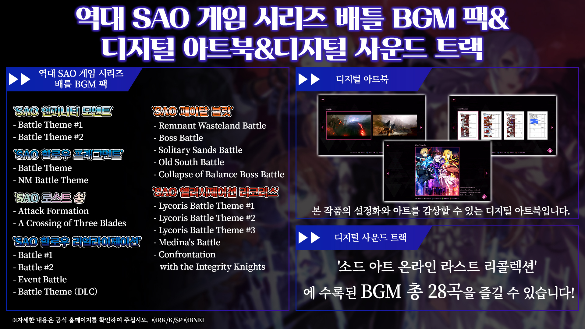 ▶역대 SAO 게임 시리즈 배틀 BGM팩, 디지털 아트북, 디지털 사운드 트랙