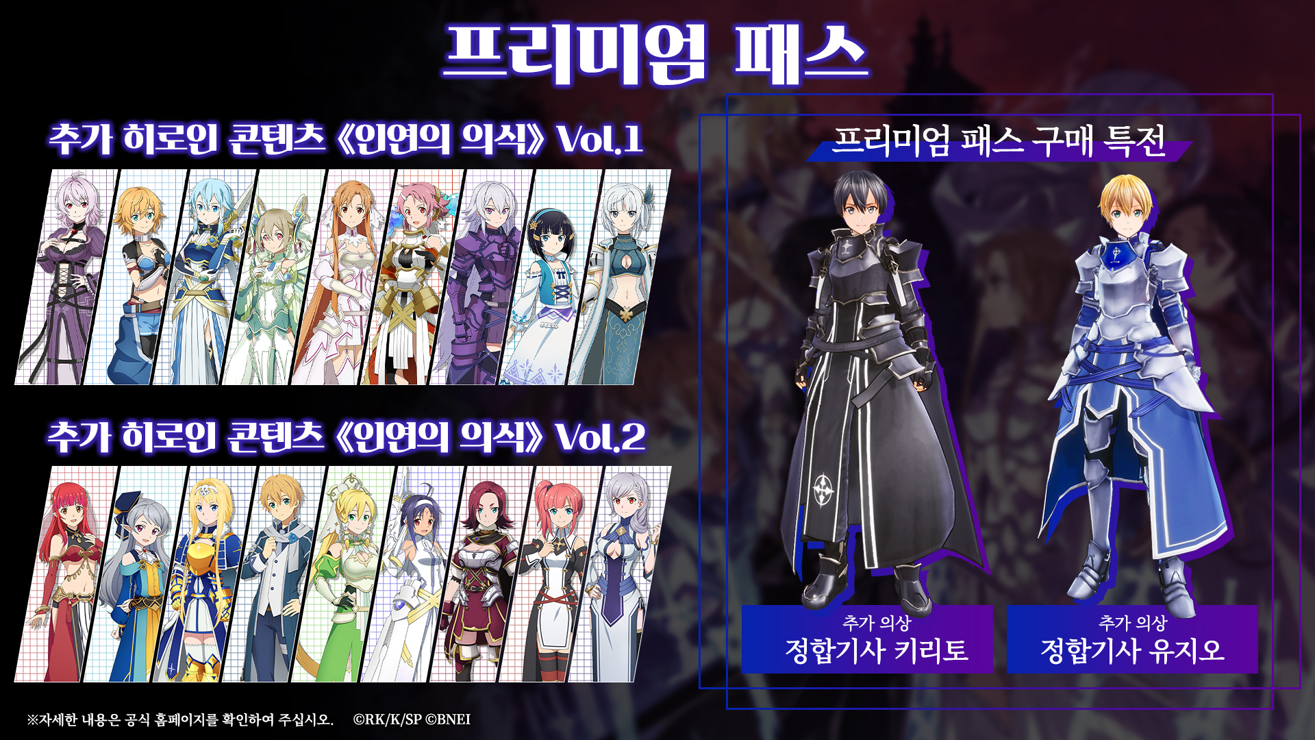 ・프리미엄 패스 구매 특전: 추가 의상 ‘정합기사 키리토’, ‘정합기사 유지오’