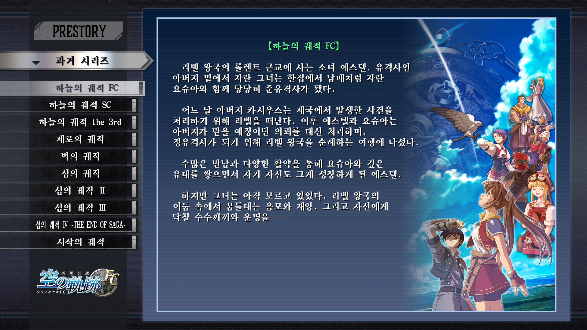 | 권리표기 | © Nihon Falcom Corporation. All rights reserved. Licensed to and published by Clouded Leopard Entertainment Inc |