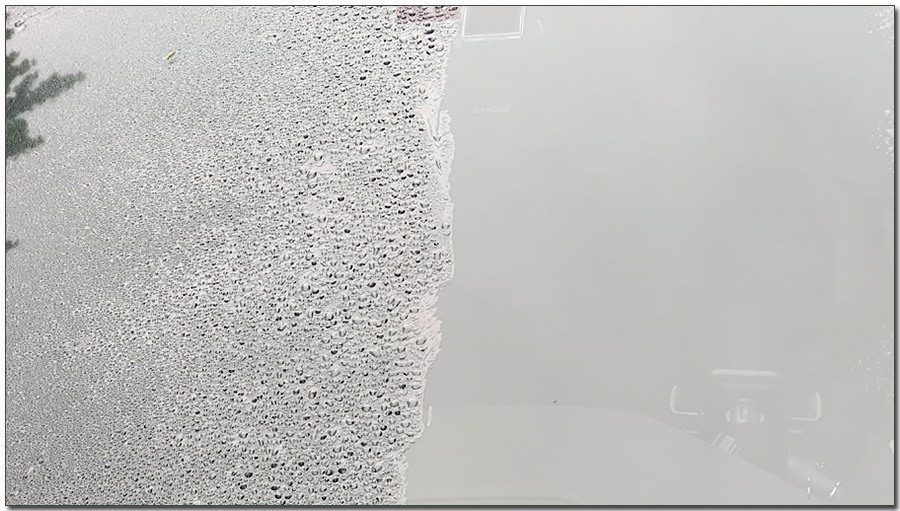 발수코팅제로 코팅막이 형성되어 오염물이 쉽게 제거되고, 유리표면에서 물기가 동그랗게 구슬처럼 맺혀 물기가 빠르게 제거되어 우천 주행 시 시야 확보가 용이하고, 오염물의 세척도 쉬워집니다.