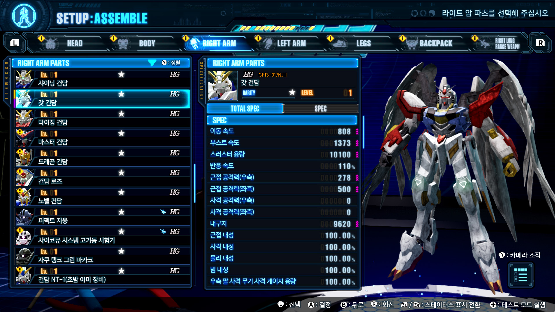 ・"나만의 건프라" 커스터마이즈: 약 20개의 기체로 파츠 조합, 컬러 변경 등