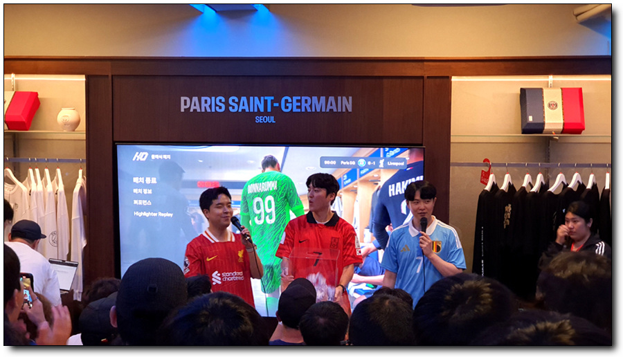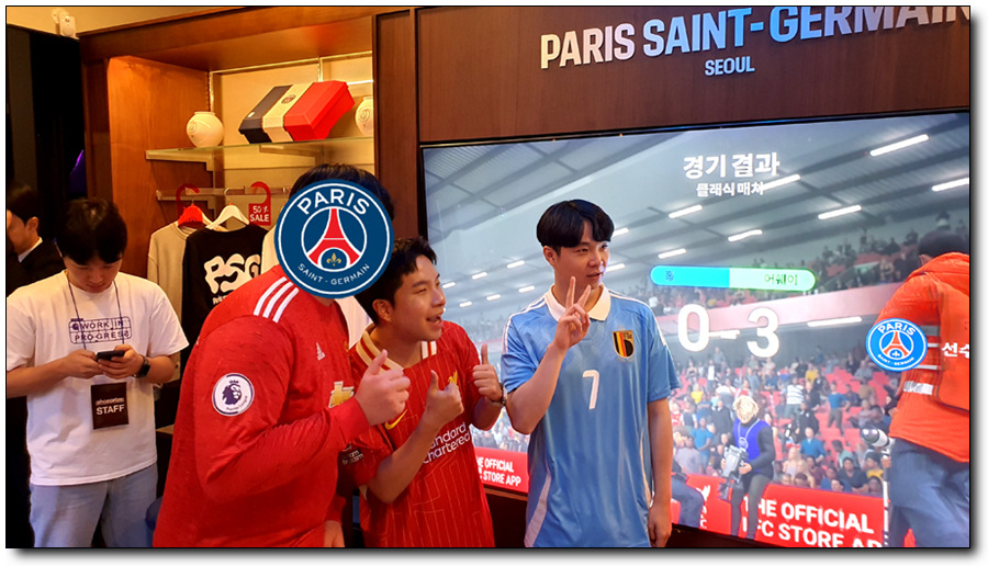 PSG가 팝업스토어 형태로 해외에서 매장을 연 적은 있지만, 플래그십 스토어 형태로 파리 생제르맹이 매장을 운영하는 것은 프랑스와 미국 이후 아시아에서는 한국이 처음이라고 합니다. 그래서 매장 내에서는 해외 직구로만 구매가 가능했던 파리 생제르맹 유니폼과 굿즈들을 판매하고 있었습니다.