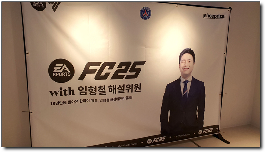 행사 중간에는 FC25의 해설 녹음에 참여한 임형철 해설위원의 토크쇼가 열려 해설 녹음 작업 과정에서 정해져 있는 상황을 설명하면서 중계 텐션을 높이기 위해 다양한 시도에 대한 얘기와 좁은 공간을 활용해 축구의 재미를 느낄 수 있는 새롭게 추가된 러쉬 모드에 대한 설명도 들을 수 있었습니다.