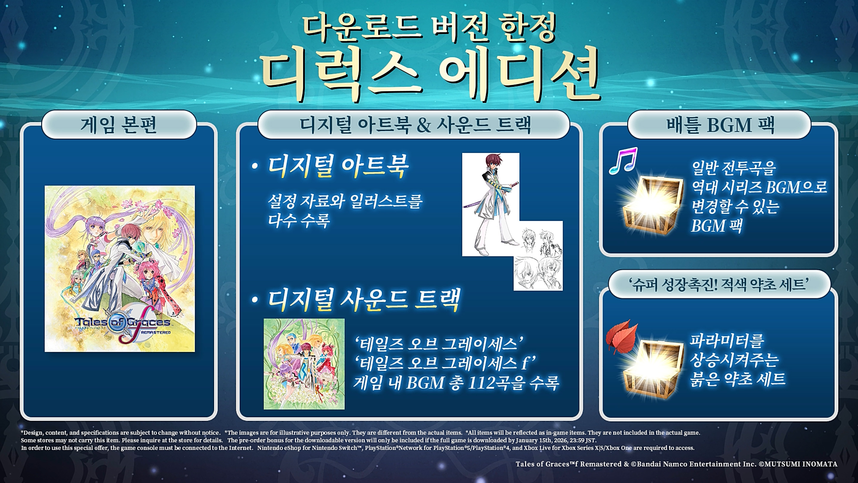 ‘테일즈 오브 그레이세스 f 리마스터’(한국어판)의 다운로드 버전 예약 판매를 시작했다. ‘디럭스 에디션’에는 호화로운 특전이 제공된다.