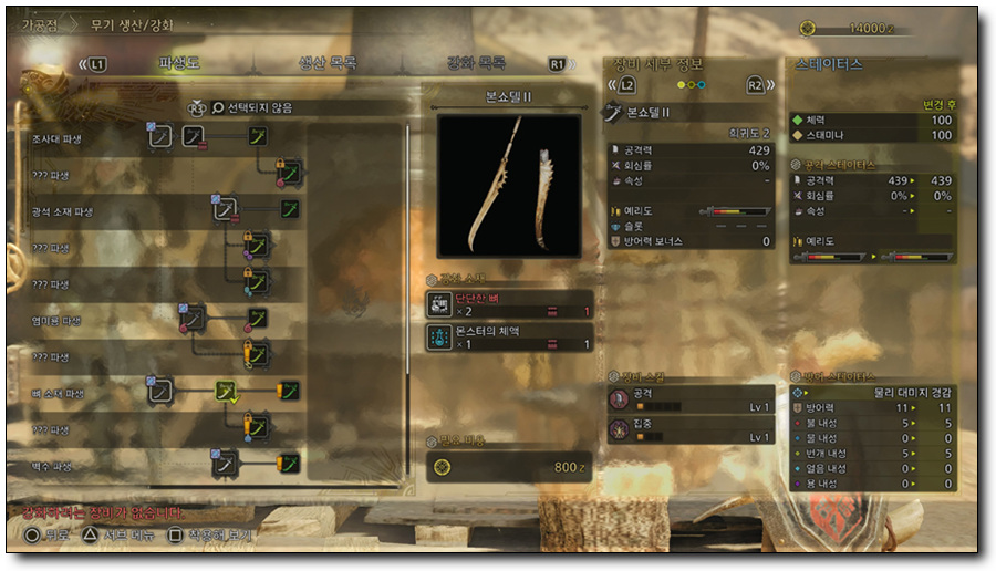 무기 공격에는 몬스터의 부위에 따라 공격 효과가 달라지는 공격 계통을 활용할 수 있습니다. 공격 계통에는 검으로 베는 공격이나 찌르기 공격으로 몬스터의 꼬리를 자를 수 있는 절단 계통, 해머 등으로 몬스터의 머리를 노려 기절시키는 타격 계통, 보우건 탄과 화살 등의 탄 계통이 존재해 전투 상황에 대응할 수 있는 무기와 공격 방법을 선택할 수 있습니다.