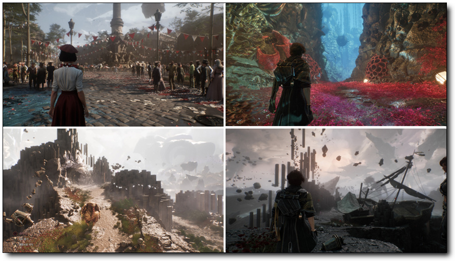 게다가 직선과 곡선의 규칙적이고 대칭적인 형태와 원색을 통해 강렬한 느낌을 주는 ‘아르 데코 양식’이 프랑스 문화와 결합하여 고대 성소, 마을이나 동굴 등 게임의 무대가 되는 스테이지가 시각적인 면에서 화려하고 몽환적인 판타지 세계를 선보이고 있어, 플레이어는 이전 원정대의 흔적을 따라가며 숨겨진 비밀을 파헤쳐 나가게 됩니다.