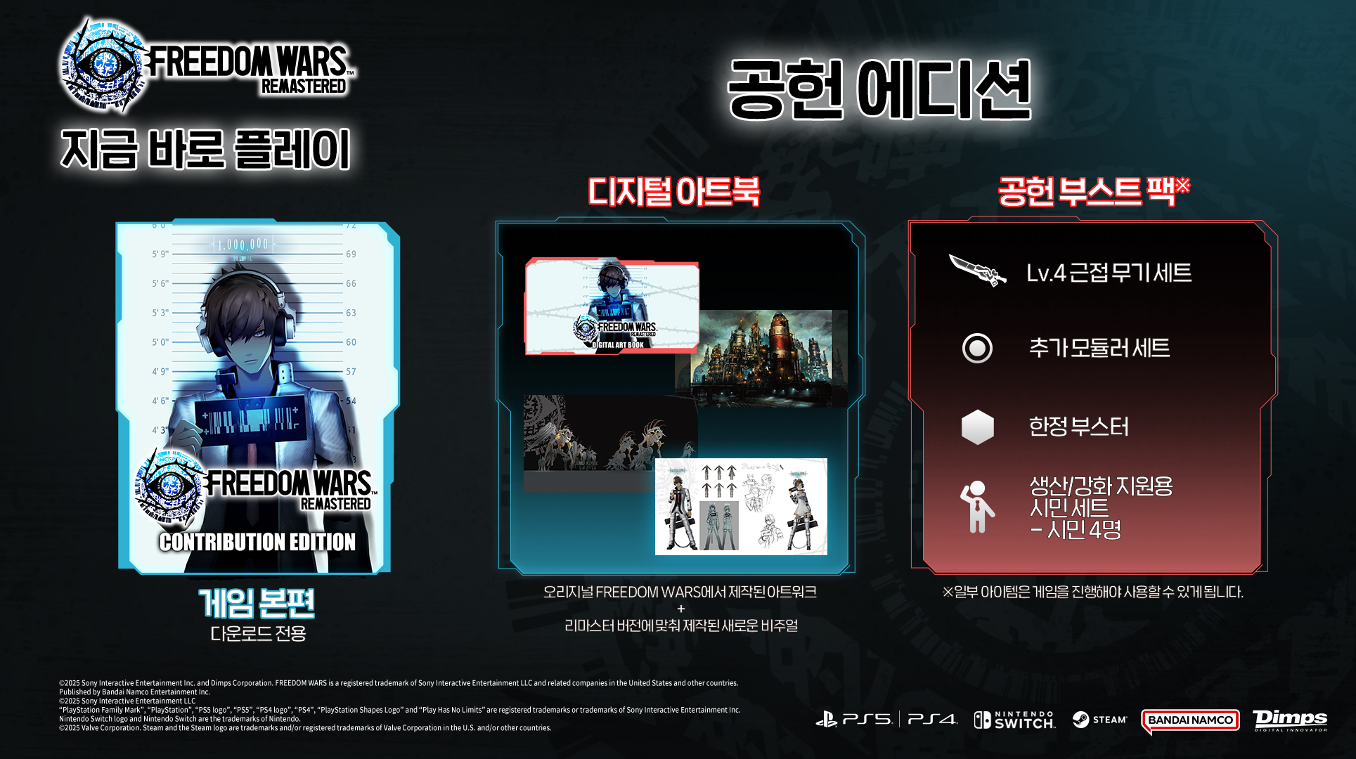 PlayStation®5, Nintendo Switch™ 2, Nintendo Switch™용 패키지 버전 및 PlayStation®5, PlayStation®4, Nintendo Switch™ 2, Nintendo Switch™, Xbox Series X|S, Xbox One, Steam®용 다운로드 버전을 지금 바로 플레이할 수 있다.